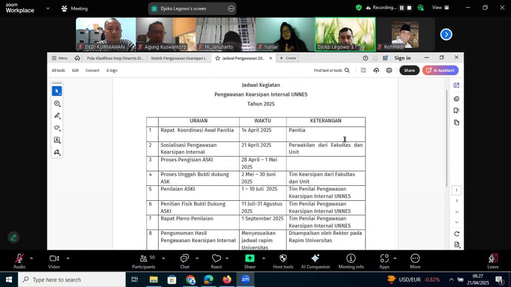 Sosialiasi Pengawasan Kearsipan UNNES Tahun 2025