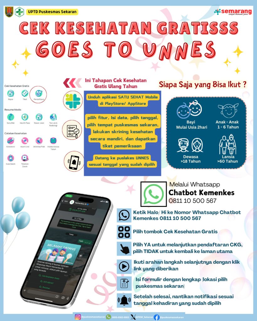 Kegiatan Cek Kesehatan Gratis di UNNES direncanakan akan kembali dilaksanakan setelah Hari Raya Idulfitri sebagai bagian dari upaya berkelanjutan dalam meningkatkan kualitas kesehatan sivitas akademika UNNES.