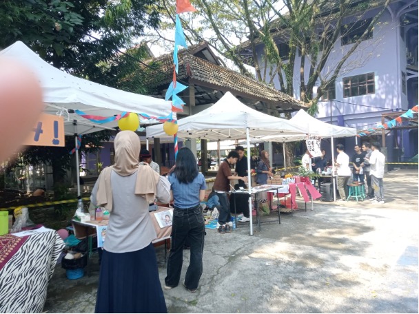 Emphasizing a “from students for students” concept, this bazaar featured various stands selling works produced from their coursework. A major highlight was a photo booth with an art theme involving face illustration. For just Rp12,000, visitors could get a live face sketch from a student. This experience quickly became a crowd favourite, offering a personal and artistic memento.