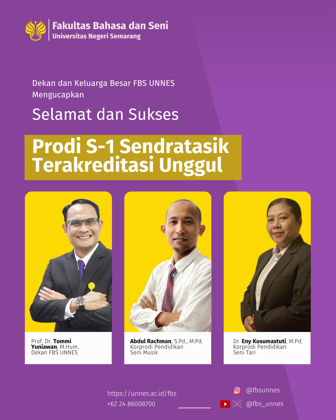 “Akreditasi unggul ini adalah buah dari kerja keras kolektif para dosen, tenaga kependidikan, dan mahasiswa. Kami mengucapkan selamat dan terima kasih atas dedikasi yang luar biasa untuk terus menjaga dan meningkatkan mutu,” ujarnya di kampus FBS UNNES.