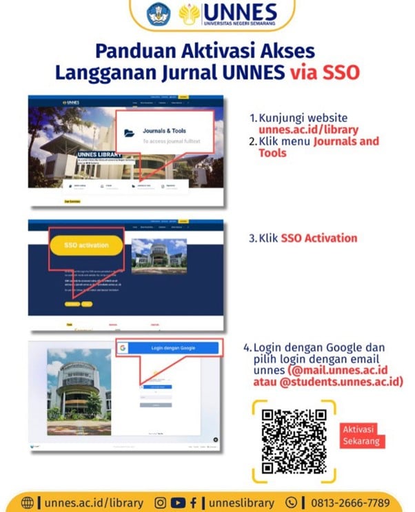 Mahasiswa yang ingin mengakses dari luar kampus dapat melakukan aktivasi SSO melalui tautan berikut: 👉 https://bit.ly/SSOlibUNNES