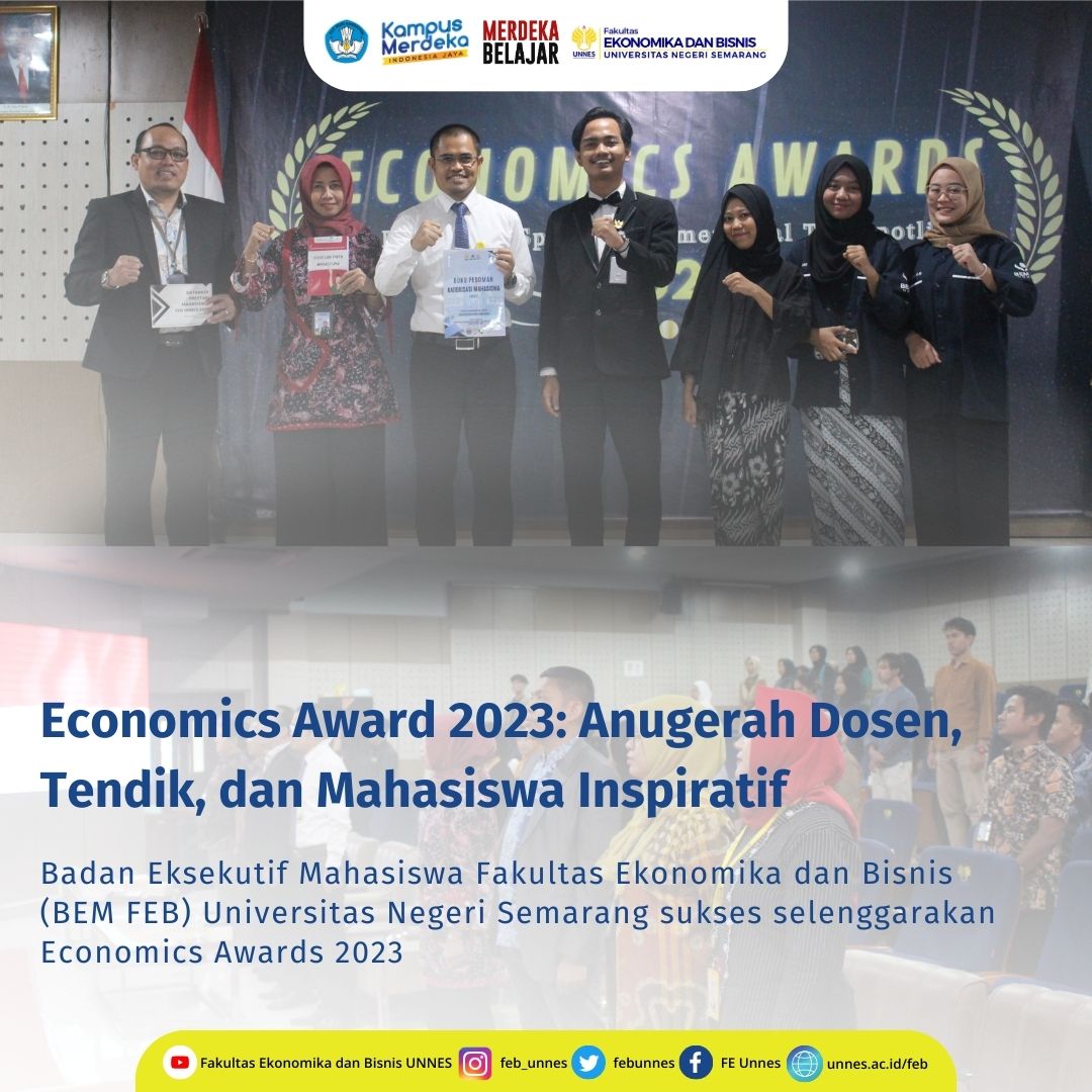 The Executive Board of the Faculty of Economics and Business Students (BEM FEB) Universitas Negeri Semarang successfully held the 2023 Economics Awards (7/12). The event was opened directly by the Dean of FEB UNNES, Prof. Amir Mahmud, S.Pd, M.Si, accompanied by the Deputy Dean for Academic Affairs, Agung Yulianto, S.Pd, M.Si. The event was held...Read More