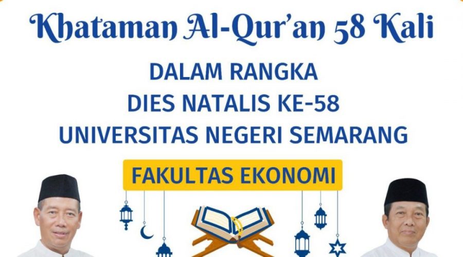 FE UNNES menyelenggarakan khataman Al-Qur’an 58 kali dalam rangka Dies Natalis ke-58 Universitas Negeri Semarang. Kegiatan ini merupakan agenda tahunan yang diselenggarakan oleh FE UNNES. Khataman dilaksanakan di Masjid FE dan dihadiri oleh keluarga besar FE baik dosen, tenaga kependidikan, dan mahasiswa. Kegiatan ini dimaksudkan untuk menanamkan nilai-nilai Al-Qur’an dan menjadikan Al-Qur’an sebagai pegangan dalam kehidupan sehari-hari. FE UNNES meyakini bahwa generasi penerus bangsa yang cakap dalam ilmu pengetahuan dan...Read More