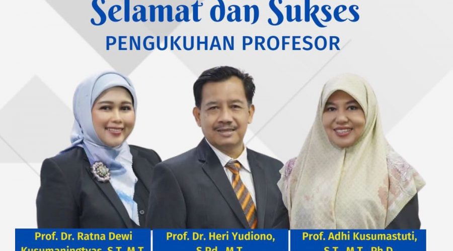 The leadership and academic community of the Faculty of Economics and Business (FEB) UNNES congratulate and succeed on the inauguration of the new professor at UNNES. 1. Prof. Dr. Ratna Dewi Kusumaningtyas, S.T., M.T. : Professor in Process Systems Engineering. 2. Prof. Dr. Heri Yudiono, S.Pd., M.T. : Professor in Management Science, Mechanical Engineering Education. 3. Prof. Adhi Kusumastuti, S.T., M.T., Ph.D. : Professor in the Field of Textile Chemistry....Read More