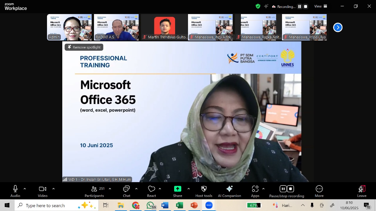 Semarang, 14 Juni 2025 — Sebanyak 1.000 mahasiswa Fakultas Hukum Universitas Negeri Semarang (FH UNNES) mengikuti pelatihan profesional Microsoft Office 365 yang diselenggarakan secara daring dalam lima tahapan. Pelatihan ini bertujuan untuk meningkatkan keterampilan digital mahasiswa dalam penggunaan aplikasi Microsoft Word, Excel, dan PowerPoint—tiga perangkat lunak utama yang sangat dibutuhkan di dunia kerja modern. Kegiatan...Read More