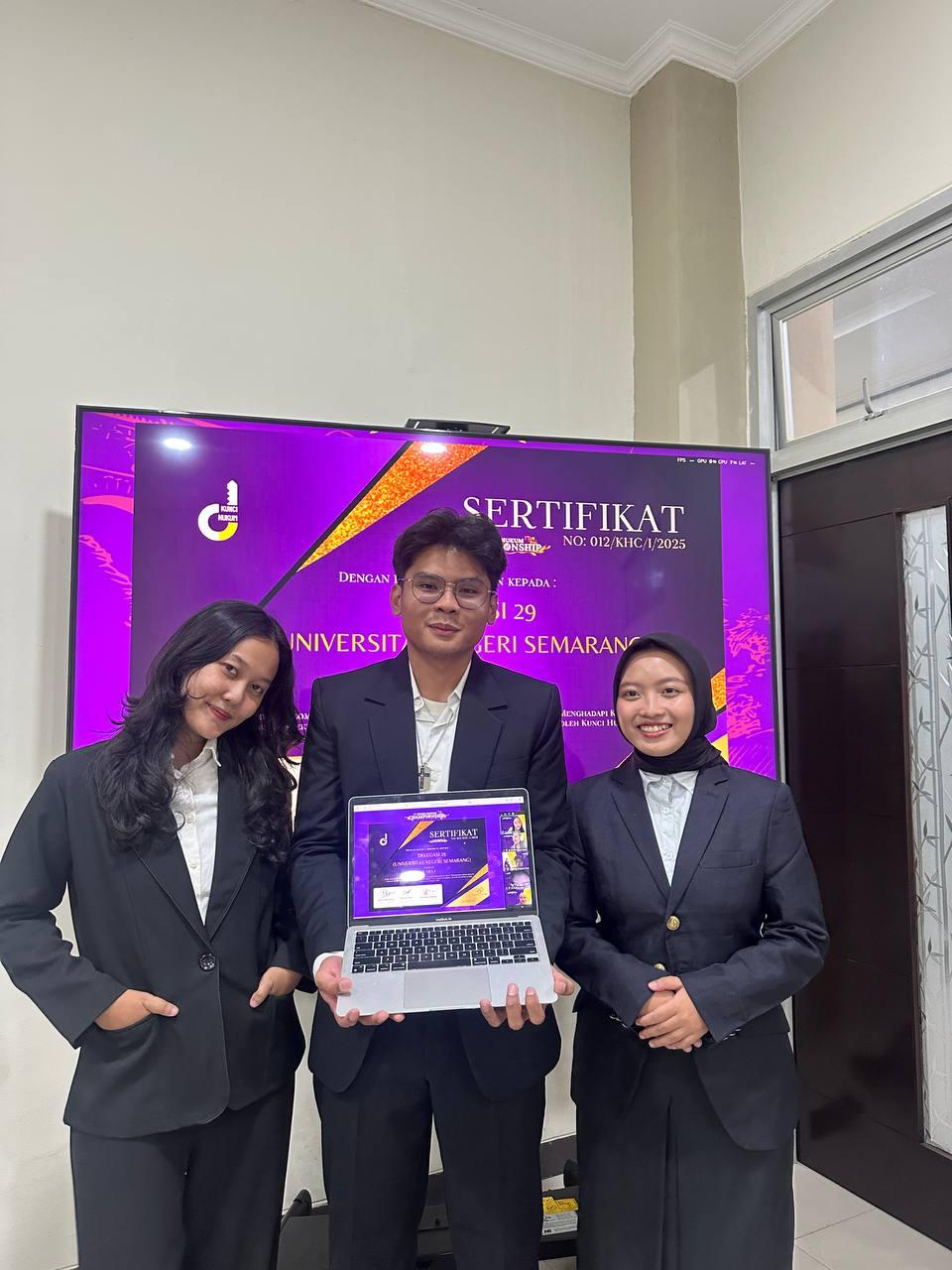 Semarang, 2025 – Kabar membanggakan kembali datang dari Fakultas Hukum Universitas Negeri Semarang (FH UNNES). Delegasi dari Private and Commercial Law Community (PCLC) FH UNNES berhasil meraih Juara 1 dalam ajang Legal Opinion Competition Kunci Hukum 2025 yang diselenggarakan oleh Kunci Hukum bekerja sama dengan Sandiva Legal Network secara daring.Tim delegasi yang beranggotakan mahasiswa angkatan...Read More