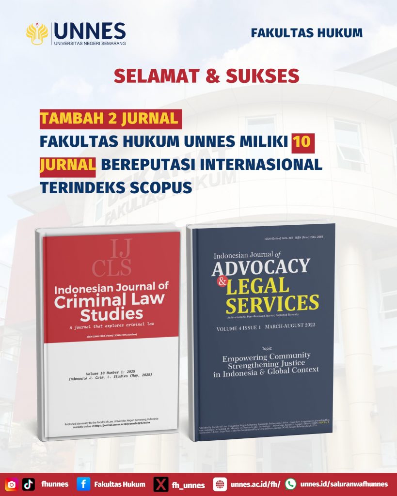 Penambahan dua jurnal ini menunjukkan bahwa FH UNNES semakin diperhitungkan dalam kancah akademik global. Kami berkomitmen untuk terus meningkatkan kualitas penelitian dan publikasi ilmiah sebagai bagian dari tanggung jawab akademik dalam membangun pemahaman hukum yang lebih luas.