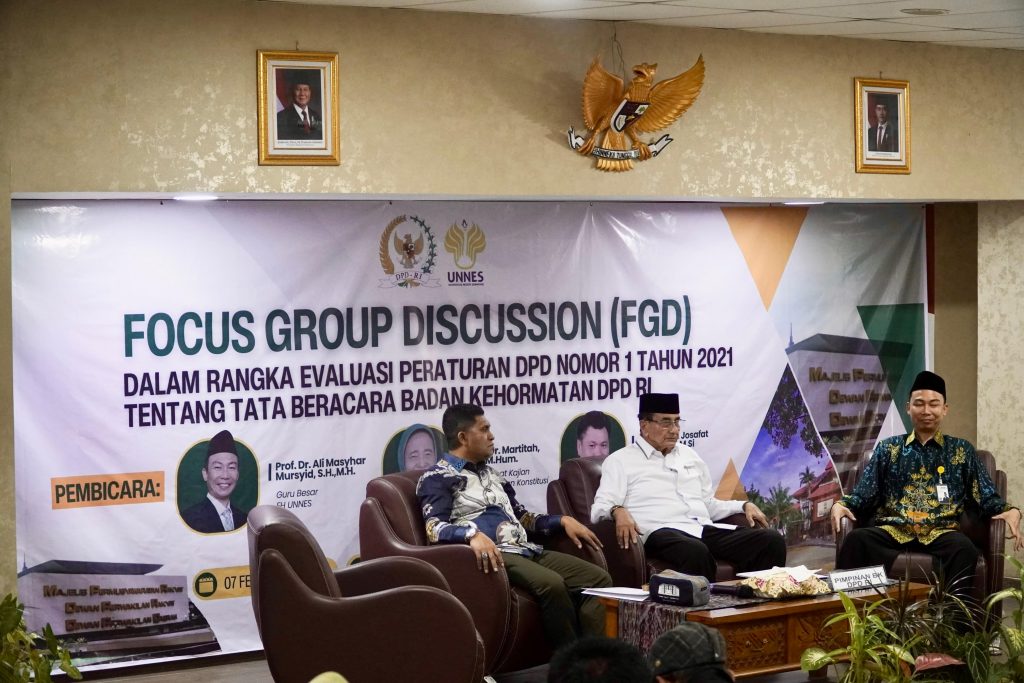 FGD ini menjadi momentum penting dalam menegaskan peran akademisi dan praktisi hukum dalam mengawal kebijakan publik yang berbasis prinsip-prinsip konstitusional. Dengan evaluasi mendalam terhadap Peraturan DPD Nomor 1 Tahun 2021, diharapkan tata beracara Badan Kehormatan DPD RI semakin efektif, transparan, dan selaras dengan cita-cita negara hukum yang demokratis.