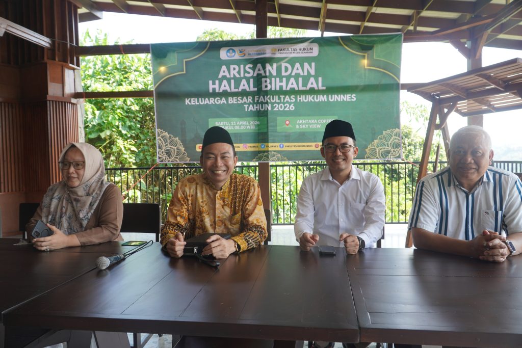 SEMARANG – Dalam rangka merayakan Idulfitri dan mempererat tali silaturahmi, Fakultas Hukum Universitas Negeri Semarang (UNNES) menyelenggarakan acara “Arisan dan Halal bi Halal Keluarga Besar Fakultas Hukum UNNES Tahun 2026”. Berlangsung dalam suasana yang hangat dan penuh kekeluargaan, acara ini digelar di Semarang pada tanggal 11 April 2026. Acara ini dihadiri oleh para dosen, tenaga kependidikan, staff CS, dan juga staff keamanan.