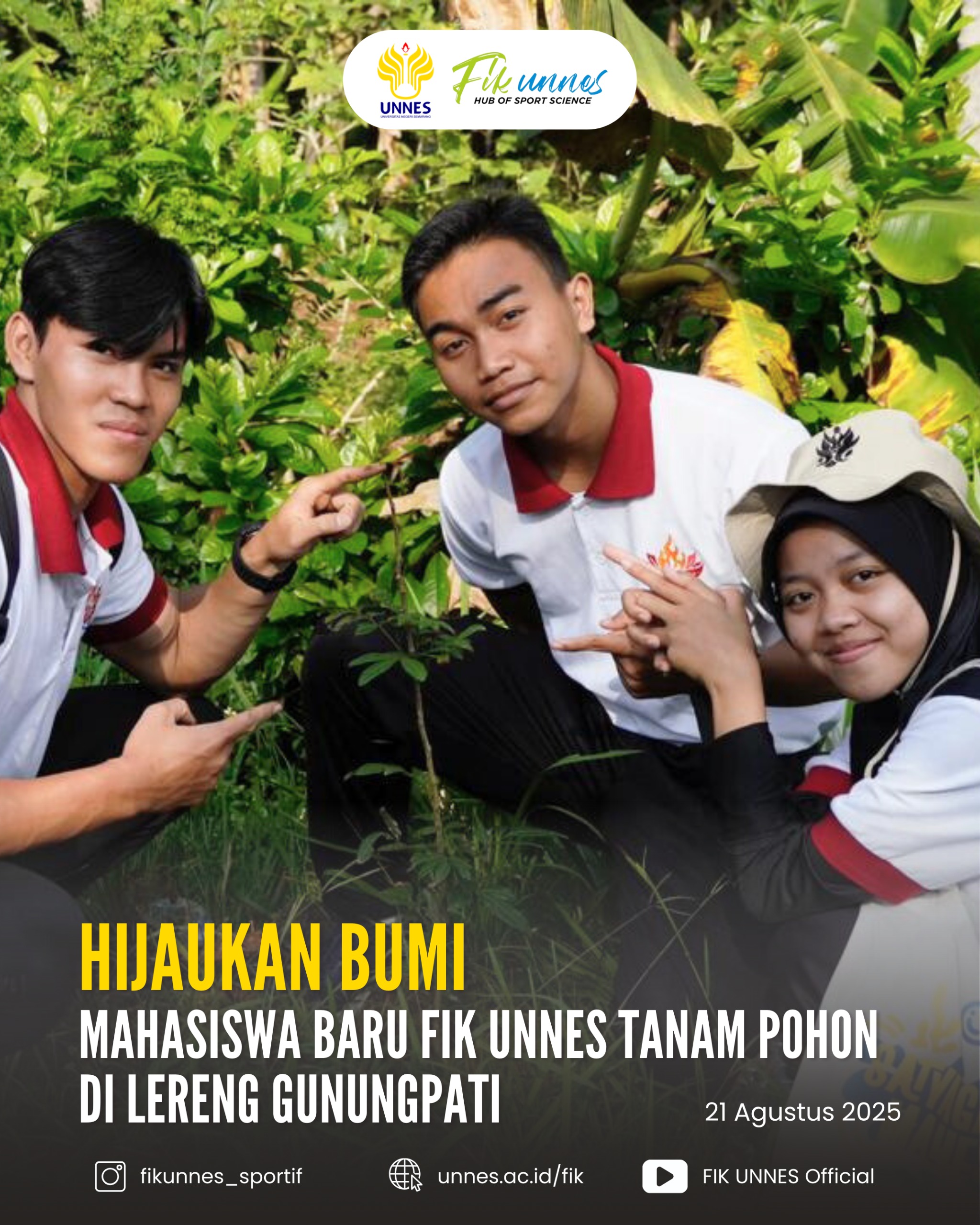 Semangat cinta lingkungan ditunjukkan oleh mahasiswa baru Fakultas Ilmu Keolahragaan Universitas Negeri Semarang (FIK UNNES) Tahun Akademik 2025/2026 melalui kegiatan penanaman pohon yang berlangsung di Dukuh Sironjang, RT 01/RW 01, Kelurahan Pakintelan, Kecamatan Gunungpati, Semarang. Kegiatan ini menjadi bagian dari program Pengenalan Kehidupan Kampus Mahasiswa Baru yang mengedepankan nilai-nilai konservasi sebagai ciri khas UNNES. Para...