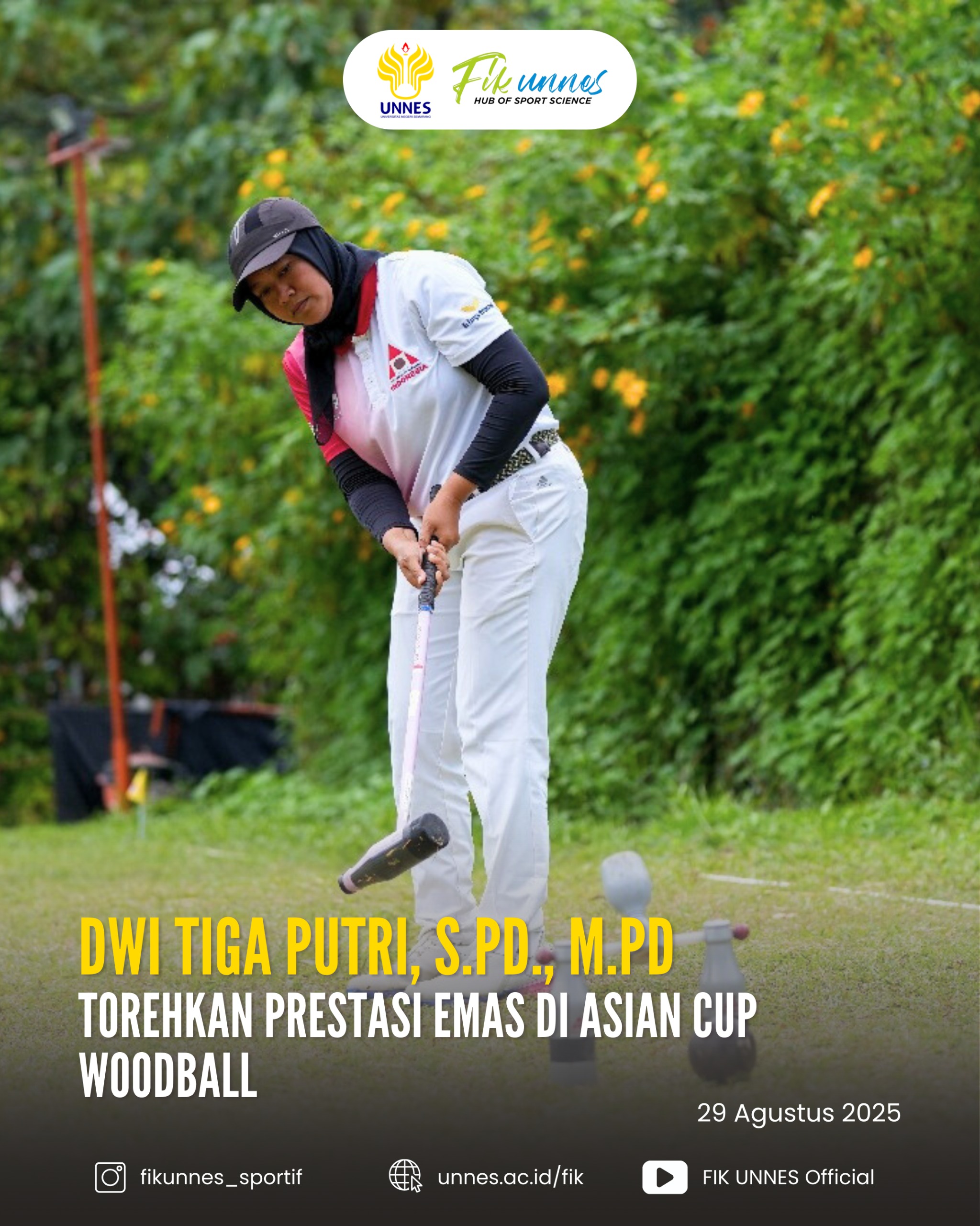 Mengukir prestasi bukan hal baru bagi Dwi Tiga Putri, S.Pd., M.Pd., dosen Program Studi PJSD FIK UNNES. Kali ini Ia sukses meraih medali emas pada kategori tim fairway dan medali perunggu pada kategori tim stroke dalam ajang 3rd Asian Cup Woodball Championship 2025 dan 7th AICE Indonesia Open 2025. Kompetisi bergengsi ini diselenggarakan di Megamendung,...