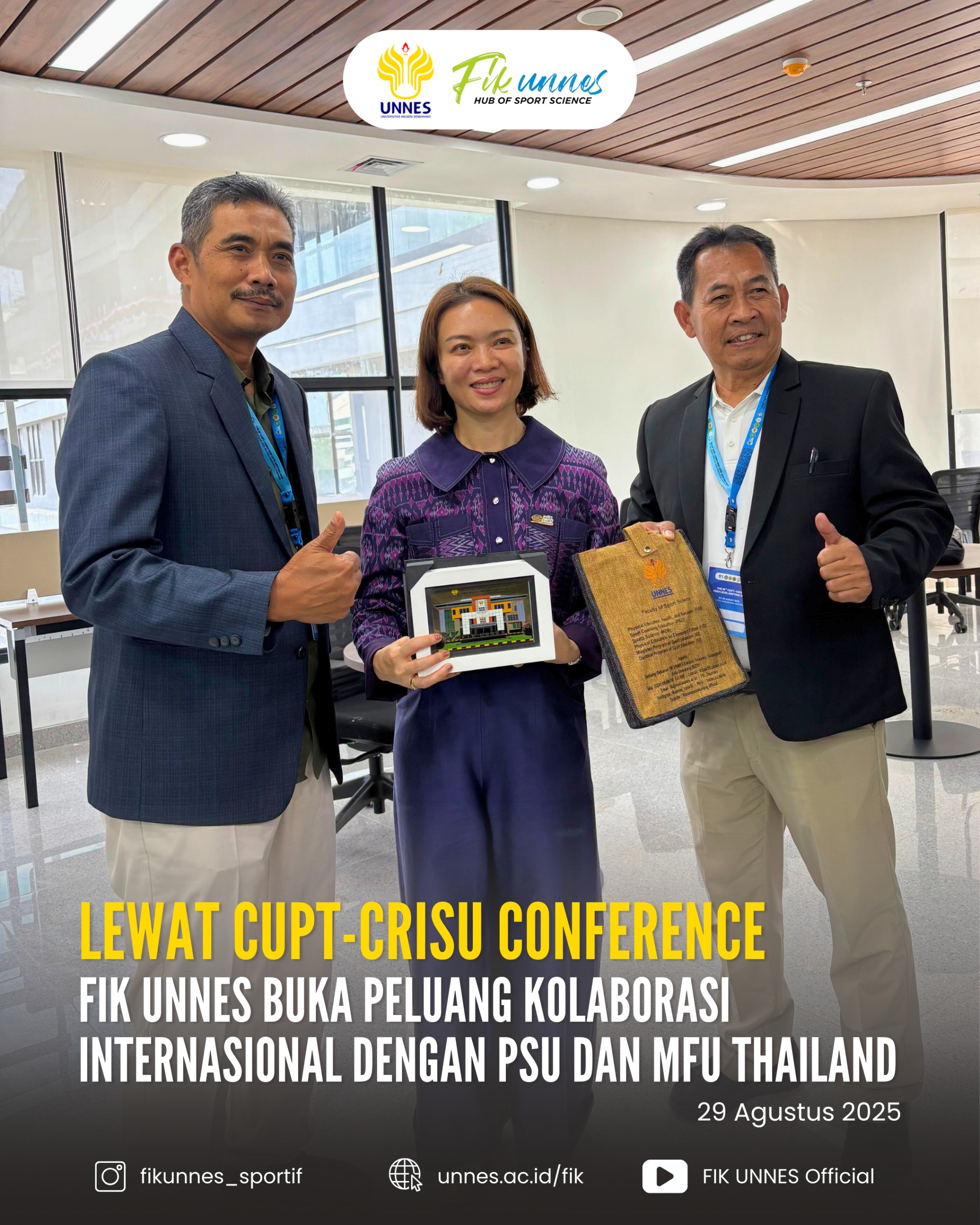 Fakultas Ilmu Keolahragaan (FIK) Universitas Negeri Semarang (UNNES) terus memperluas jejaring internasional. Melalui partisipasi aktif dalam 16th CUPT-CRISU Conference yang diselenggarakan di Ibu Kota Nusantara (IKN) pada 24–26 Agustus 2025, konferensi ini menjadi ajang strategis bagi perguruan tinggi di Indonesia dan Thailand untuk memperkuat kerja sama dalam bidang pendidikan tinggi, riset, dan inovasi. Dalam agenda...