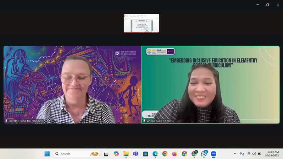 Course coordinators Dr. Wulan Aulia Azizah, M.Pd. and Petra Kristi Mulyani, Ph.D. highlighted that this collaboration provided valuable cross-cultural learning experiences for students. “Through this session, students gained real examples of how inclusive curricula can support not only academic learning but also students’ emotional wellbeing and social inclusion”, they stated.