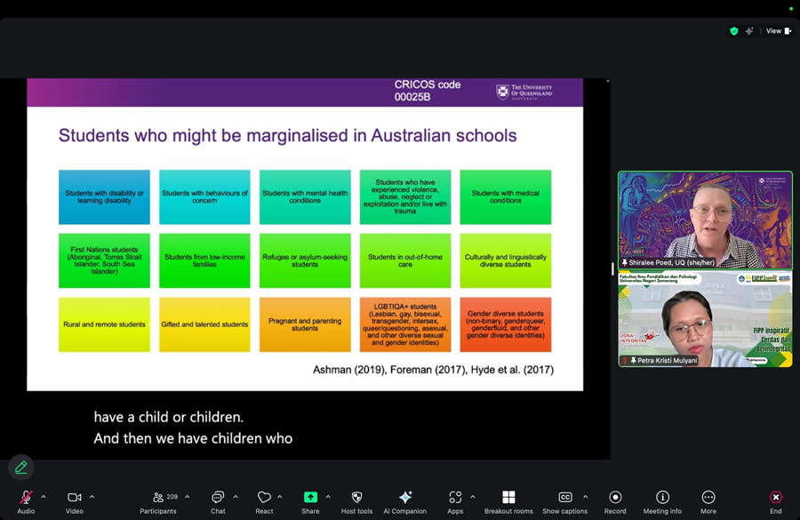 This joint teaching session further strengthens the academic collaboration between UNNES and The University of Queensland in teacher education, inclusive pedagogy, and curriculum innovation. Both institutions are committed to advancing quality, inclusive, and learner-centered education that places emotional wellbeing at the core of SDG 4’s global vision.