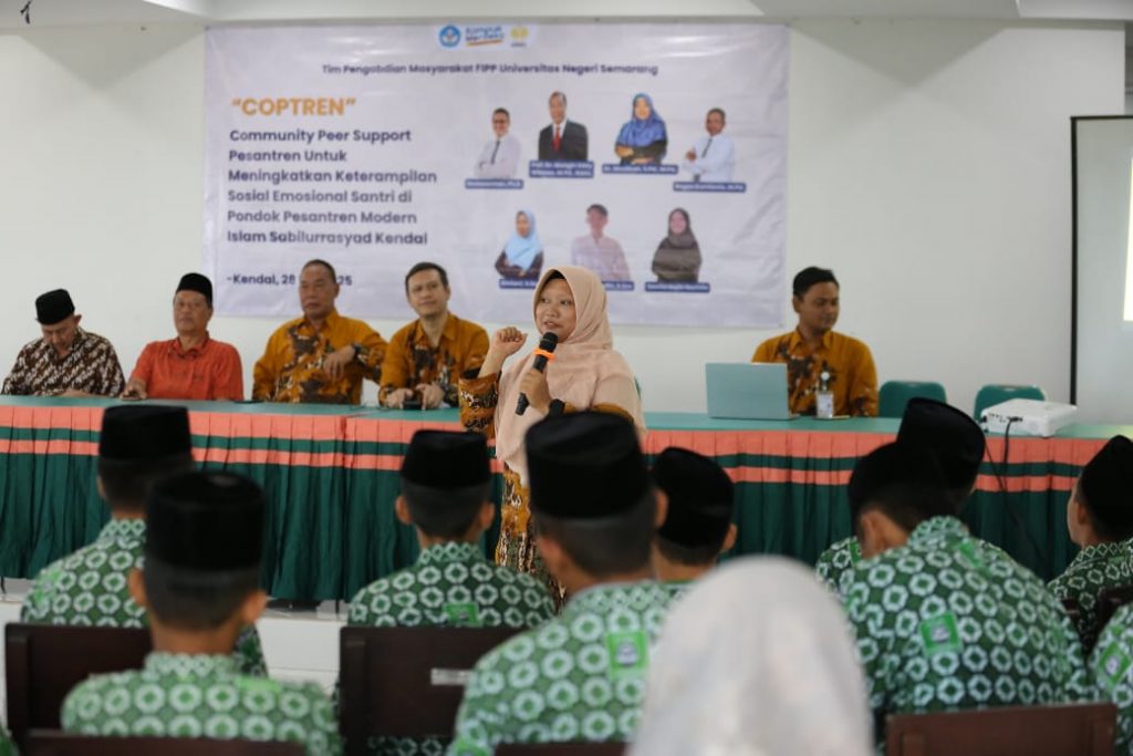 Tim pengabdian dari program Studi Bimbingan dan Konseling Universitas Negeri Semarang (UNNES) menggelar pengabdian masyarakat bertajuk COPTREN: Community Peer Support Pesantren, yang dilaksanakan di Pondok Pesantren Sabilurrasyad, Kec. Ngampel Kab. Kendal, Rabu, (28/5) pagi. Program ini bertujuan untuk mempromosikan dukungan psikologis dan membekali serta meningkatkan kompetensi hubungan sosial dan emosional bagi santri yang menjadi anggota Komunitas Peer Support. Kegiatan pengabdian ini diketuai oleh dosen Prodi Bimbingan dan Konseling FIPP UNNES Dr. Muslikah, M.Pd dan tim pengabdian yaitu Prof. Dr. Mungin Eddy Wibowo, M.Pd. Kons, Mulawarman S.Pd., M.Pd., Ph.D, Bagas Kurnianto, M.Pd, Qanita Najla Nazhifa, Sintiani, dan Hadziq Muhibbuddin.