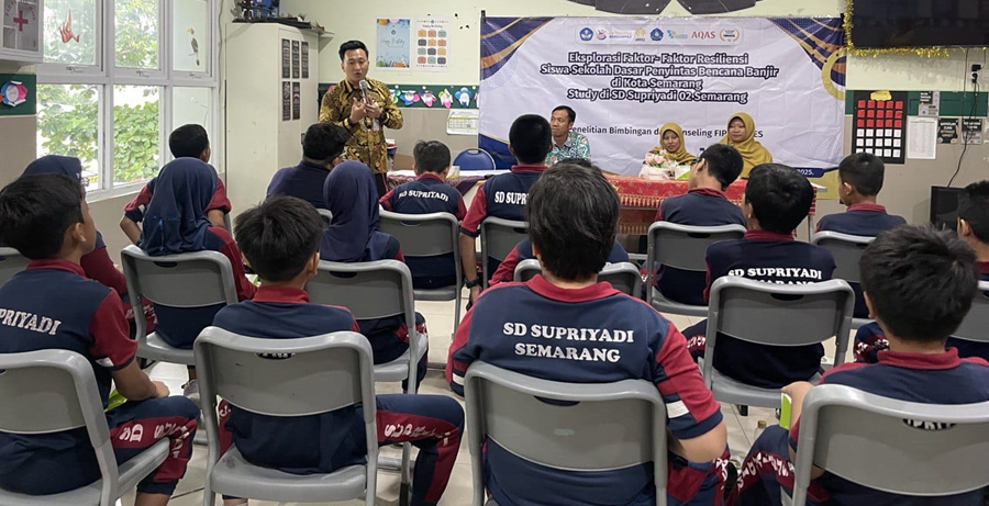 Semarang — Banjir bukan hanya meninggalkan jejak kerusakan fisik, tetapi juga menorehkan dampak psikologis yang mendalam, terutama bagi anak-anak. Menyadari pentingnya pemahaman terhadap ketahanan mental siswa di wilayah rawan bencana, tim peneliti dari Prodi BK Universitas Negeri Semarang (UNNES) melaksanakan riset bertema “Eksplorasi Resiliensi Siswa Sekolah Dasar Penyintas Bencana Banjir di Kota Semarang”.