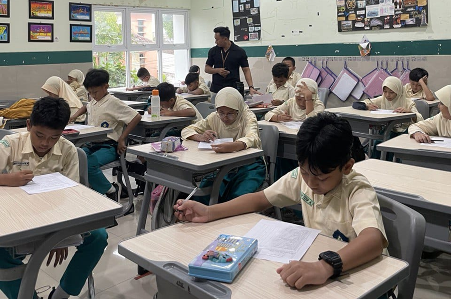 Kegiatan hari pertama difokuskan pada pengambilan data kuantitatif dengan menyebarkan angket resiliensi kepada 100 siswa kelas atas (kelas 4 & 5). Sementara di hari kedua, tim menggali secara lebih mendalam melalui wawancara kualitatif terhadap 20 siswa terpilih yang mewakili latar belakang dan pengalaman berbeda dalam menghadapi bencana banjir.