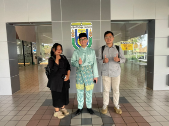 (Gambar 3. Taj dan Erlin bersama dengan dr. Edmi sebagai supervisor dan Dr. Haji Roslee sebagai Deputy Director ILIA UBD)