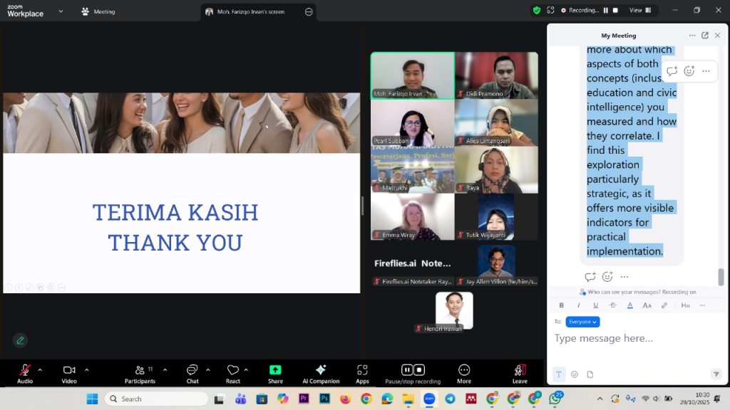 Semarang, 29 Oktober 2025 — Fakultas Ilmu Pendidikan dan Psikologi (FIPP) Universitas Negeri Semarang (UNNES) terus memperluas jejaring kolaborasi internasional melalui kerja sama riset dengan akademisi dari Monash University, Australia. Kegiatan ini merupakan tindak lanjut dari kunjungan resmi FIPP ke Monash University pada 7 Oktober 2025, yang kini dilanjutkan dengan pelaksanaan kuliah tamu daring dan penguatan riset bersama.