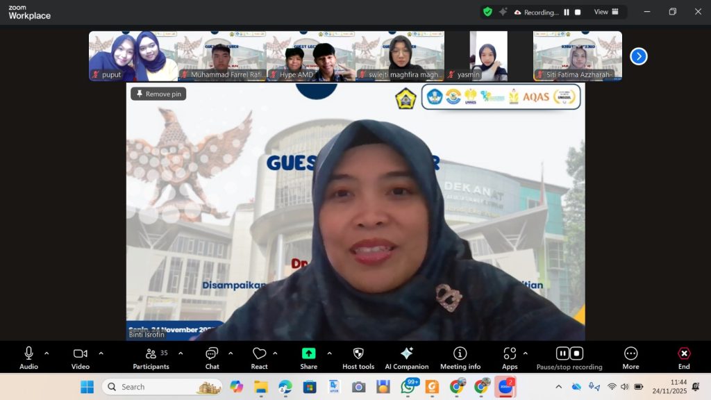 Semarang— Fakultas Ilmu Pendidikan dan Psikologi (FIPP) Universitas Negeri Semarang terus mendorong hilirisasi hasil penelitian ke dalam praktik pendidikan dan penguatan kompetensi calon pendidik. Salah satu upaya tersebut diwujudkan melalui kegiatan guest lecture yang diselenggarakan oleh Program Studi Bimbingan dan Konseling (BK) Universitas Bengkulu pada Senin, 24 November, secara daring melalui Zoom Meeting.