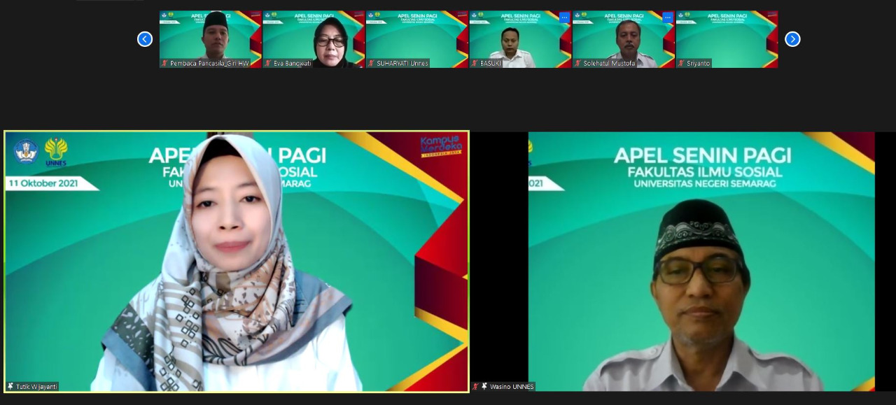 Semarang, FIS UNNES. Prof. Dr. Wasino M Hum, Wakil Dekan Bidang Akademik FIS UNNES menjadi pembina Apel Senin Pagi yang dilaksanakan pada 11 Oktober 2021 jam 08.00 WIB sampai selesai. Apel Senin Pagi dilaksanakan secara virtual menggunakan platform zoom, dihadiri seluruh dosen dan tendik di lingkungan FIS UNNES. Petugas apel terdiri dari Pembawa acara oleh...