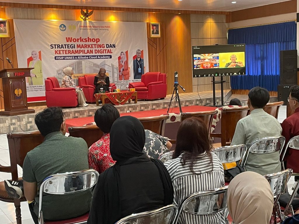 Regional Training Operations Specialist Alibaba Cloud Academy wilayah Indonesia dan Filipina Bayu Irawan menyampaikan program pelatihan, training, dan workshop yang terintegrasi dengan target penjualan tim sales Alibaba Cloud. “Program ini diharapkan dapat menciptakan sinergi antara kegiatan edukasi dan pencapaian revenue, termasuk penyelenggaraan workshop bersama guest speaker, kegiatan kolaboratif dengan mitra industri, hingga peluncuran acara seperti Academy Summit.” urai Bayu secara daring kepada peserta Workshop Strategi Marketing dan Keterampilan Digital, di Aula FISIP UNNES, Gunungpati, Semarang, Jumat 25 April 2025.