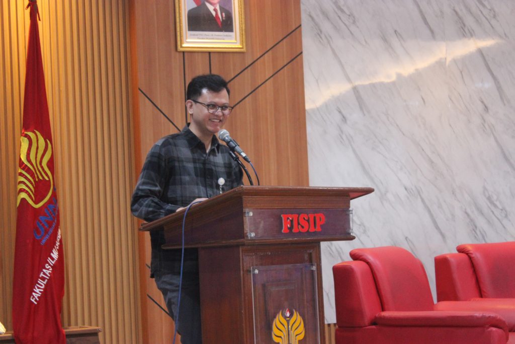 Kegiatan ini dipandu oleh Nadia, Mahasiswa Berprestasi FISIP Tahun 2025, yang bertindak sebagai moderator dan memandu jalannya diskusi secara dinamis.