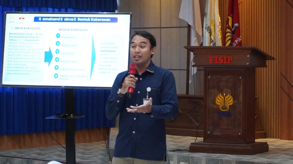 Dalam sambutannya, Prof. Dr. Arif Purnomo, S.Pd., S.S., M.Pd., selaku Dekan FISIP UNNES, menekankan pentingnya peran dunia pendidikan sebagai teladan. “Dunia pendidikan seharusnya memberikan contoh mengenai praktik-praktik baik kepada dunia luar,” ujar Prof. Arif. Beliau juga menambahkan harapannya agar melalui kegiatan ini, FISIP UNNES dapat terhindar dari segala bentuk kekerasan dan hal-hal negatif lainnya.