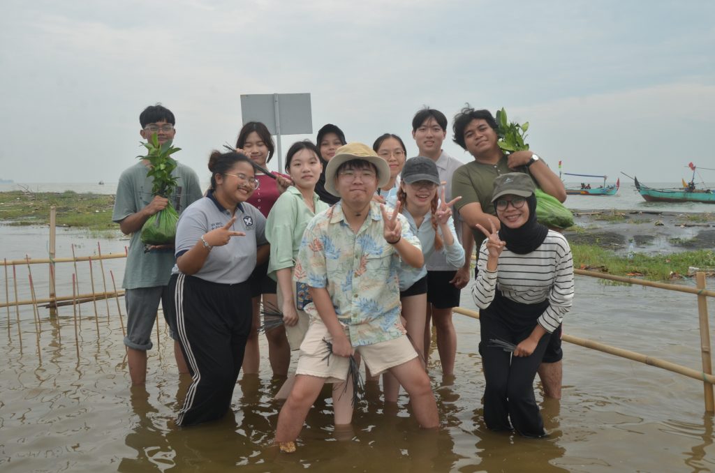 Penanaman mangrove ini bukan hanya sekadar aktivitas lingkungan, tetapi juga menjadi sarana edukasi lapangan bagi mahasiswa internasional dan lokal untuk memahami pentingnya menjaga wilayah pesisir dari ancaman abrasi dan kerusakan ekosistem. Kawasan pesisir Mangunharjo dipilih karena menjadi salah satu wilayah yang rentan mengalami degradasi lingkungan akibat perubahan iklim dan aktivitas manusia. Melalui pengalaman langsung di lapangan, peserta diajak menyadari bahwa pelestarian pesisir merupakan bagian integral dari upaya mewujudkan pembangunan yang berkelanjutan.
