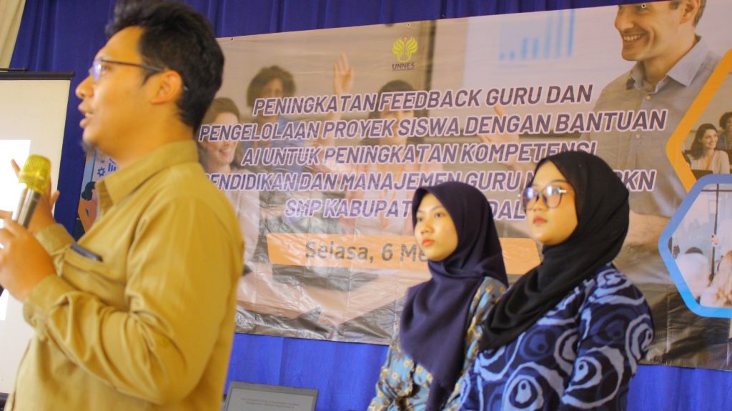 Kendal, 6 Mei 2025 — Sebanyak 81 guru Pendidikan Pancasila dan Kewarganegaraan (PPKn) SMP se-Kabupaten Kendal memenuhi aula SMP Negeri 2 Kendal untuk mengikuti pelaksanaan program pengabdian kepada masyarakat bertajuk “Peningkatan Feedback Guru dan Pengelolaan Proyek Siswa dengan Bantuan AI.”