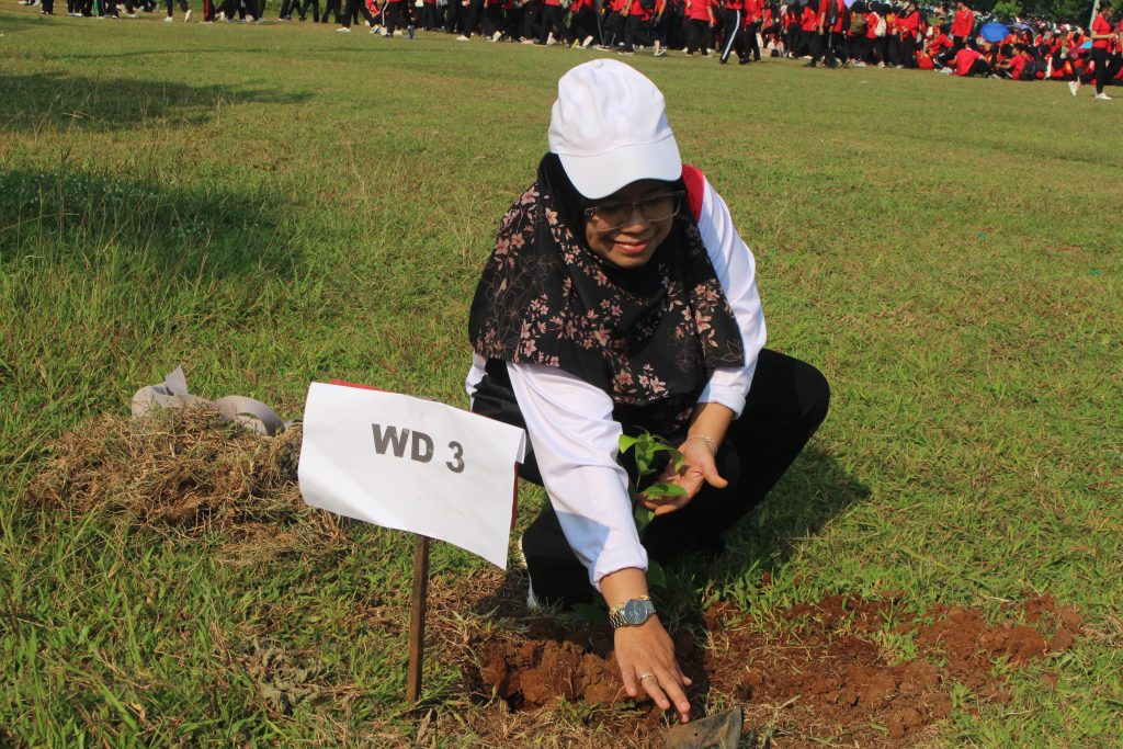 In total, 410 trees were planted, consisting of various species, including Salam (50), Tabebuya (50), Kawista (10), Talijiwo (50), Pulai (50), Mango (40), Longan (40), Sapodilla (40), Mangosteen (40), and Avocado (40).