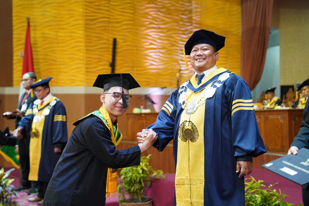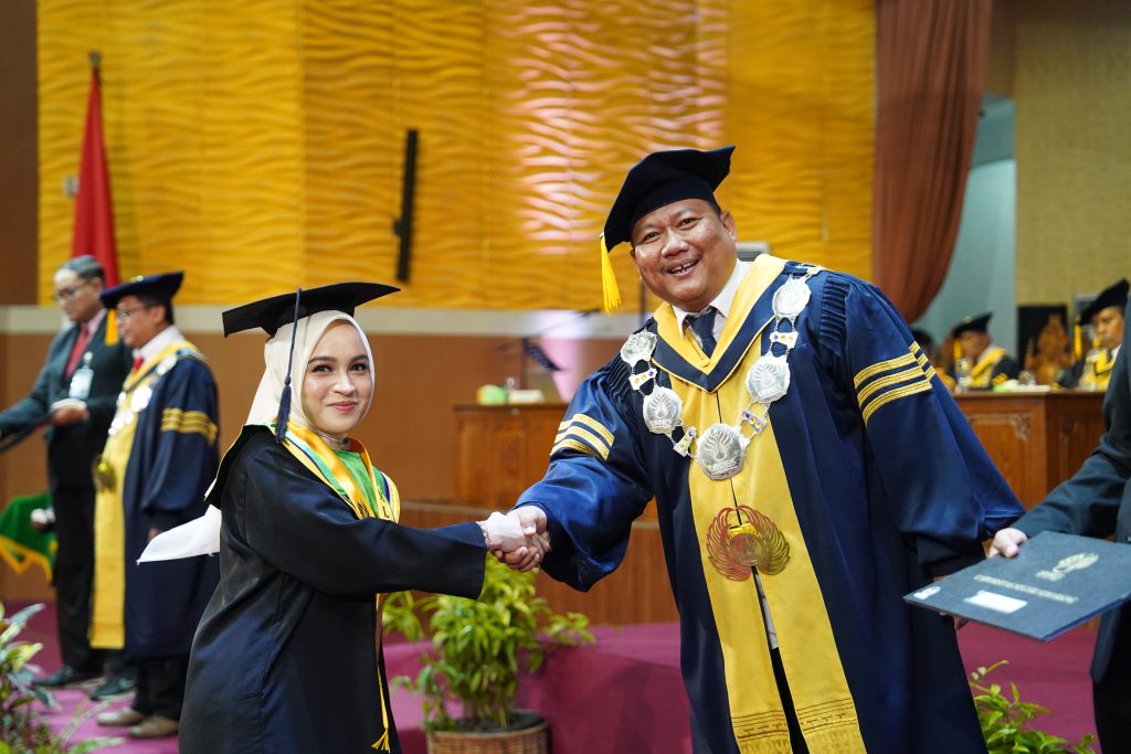 According to the report delivered by the Vice Rector for Academic Affairs and Student Affairs, Prof. Dr. Zaenuri, M.Si., Akt., the graduates comprised 43 doctoral graduates, 176 master’s graduates, 1,271 undergraduate graduates, and 10 diploma graduates.