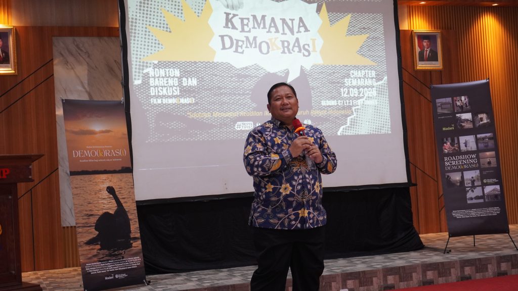 Semarang– Program Studi Ilmu Komunikasi Universitas Negeri Semarang (UNNES) bekerjasama dengan Yayasan Madani Berkelanjutan, menggelar Seminar Nasional dan Pemutaran Film bertajuk DEMO(K)RAS(I) pada hari Jumat (12/9) di Aula C7. Kegiatan ini bertujuan mendorong Mahasiswa agar tidak hanya memahami esensi persoalan keadilan iklim, tetapi juga untuk mentransformasikannya menjadi narasi yang dapat diperjuangkan melalui karya film independen.