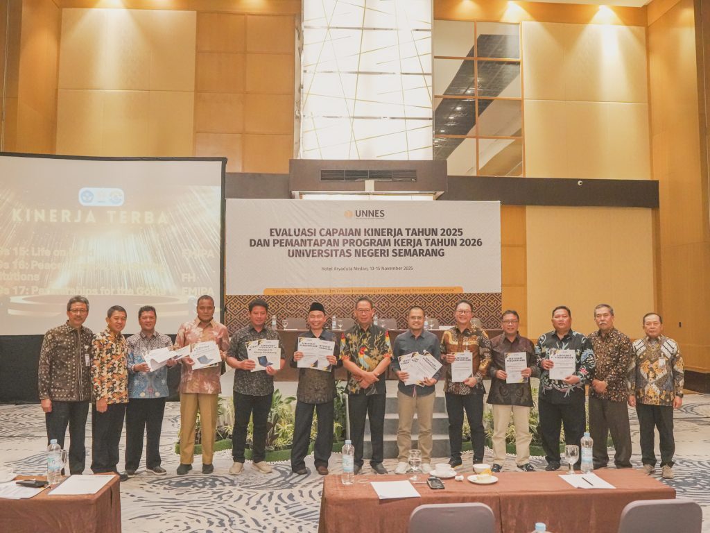 Fakultas Ilmu Sosial dan Ilmu Politik (FISIP) Universitas Negeri Semarang kembali menunjukkan performa unggulnya dalam kegiatan Evaluasi Capaian Kinerja Tahun 2025 dan Pemantapan Program Kerja Tahun 2026 yang diselenggarakan Universitas Negeri Semarang di Hotel Aryaduta Medan pada 13–15 November 2025. Kegiatan strategis ini menghadirkan seluruh pimpinan fakultas dan unit sebagai bentuk komitmen UNNES dalam meningkatkan kualitas tata kelola perguruan tinggi, produktivitas akademik, dan kontribusi keberlanjutan.