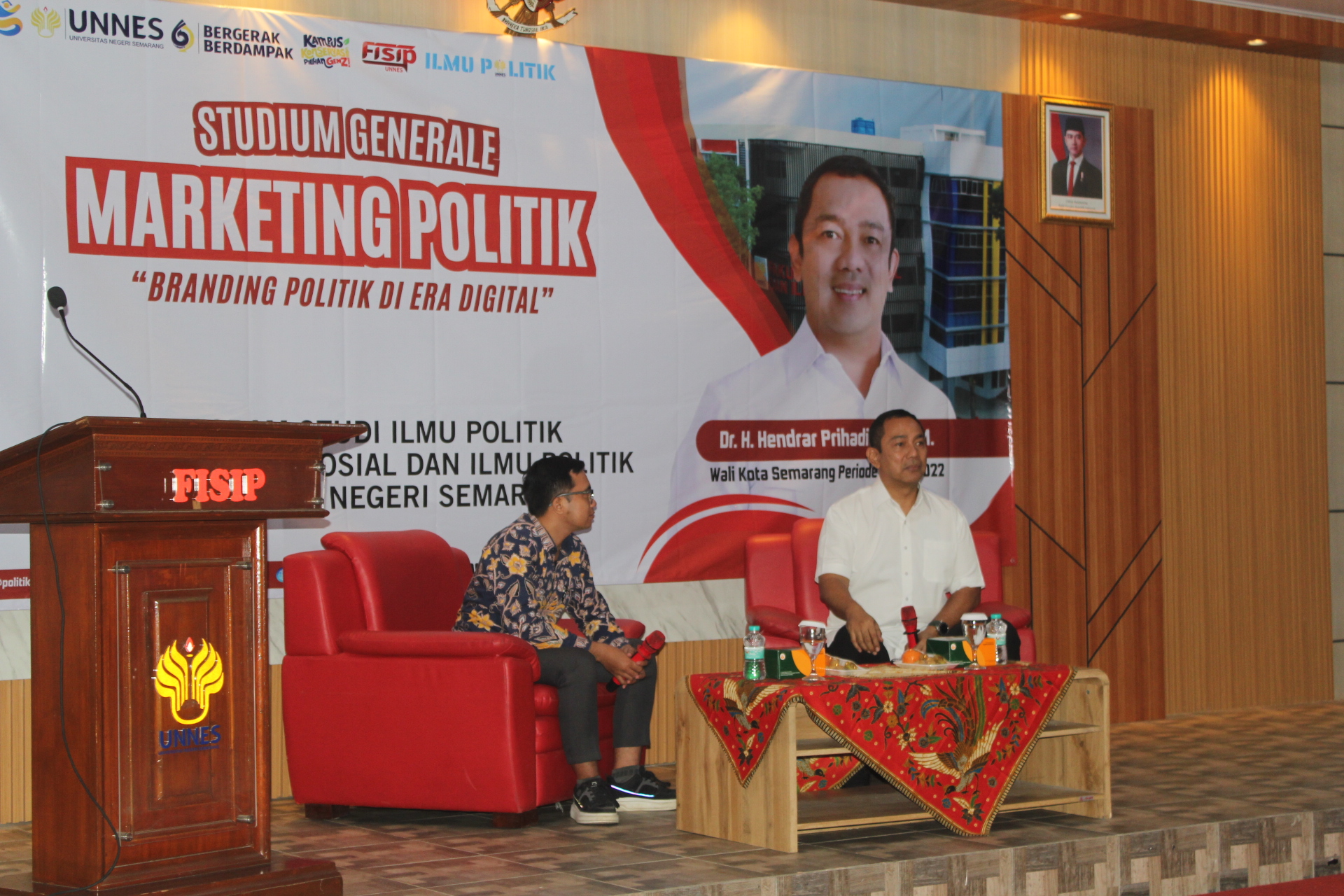 Program studi Ilmu Politik menyelenggarakan kegiatan Studium Generale bertajuk bedah strategi marketing politik pada Selasa, 7 April 2026, di Aula Gedung C7 lantai 3 FISIP. Kegiatan ini diikuti oleh mahasiswa program studi Ilmu Politik semester 4 sebagai bagian dari perkuliahan marketing politik. Kegiatan ini menghadirkan Wali Kota Semarang periode 2013–2022 Hendrar Prihadi sebagai narasumber utama....