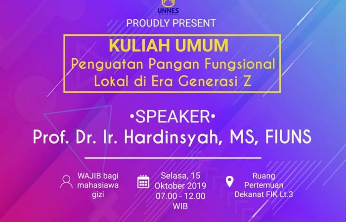Semarang (15/10) Program Studi Gizi Unnes telah menyelenggarakan kuliah umum yang bertema “Penguatan Pangan Fungsional...