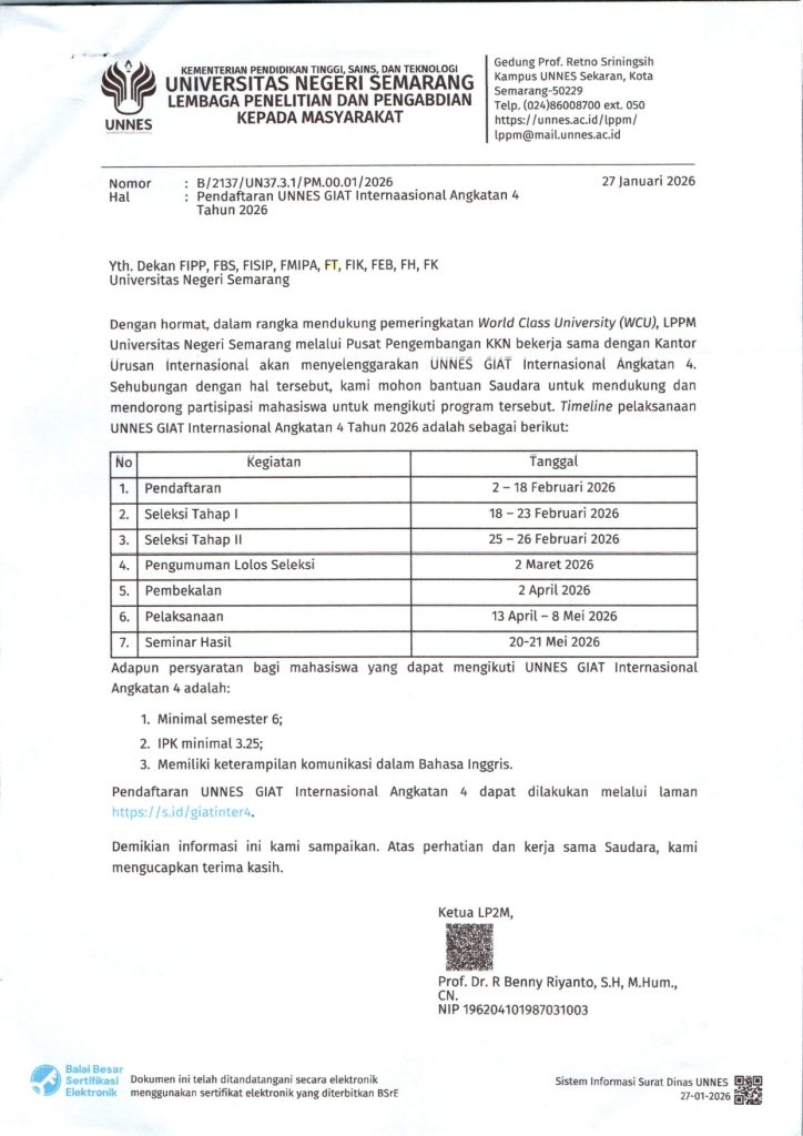 Universitas Negeri Semarang > Faculty of Engineering > Pengumuman > UNNES GIAT International Registration 4th Generation 2026