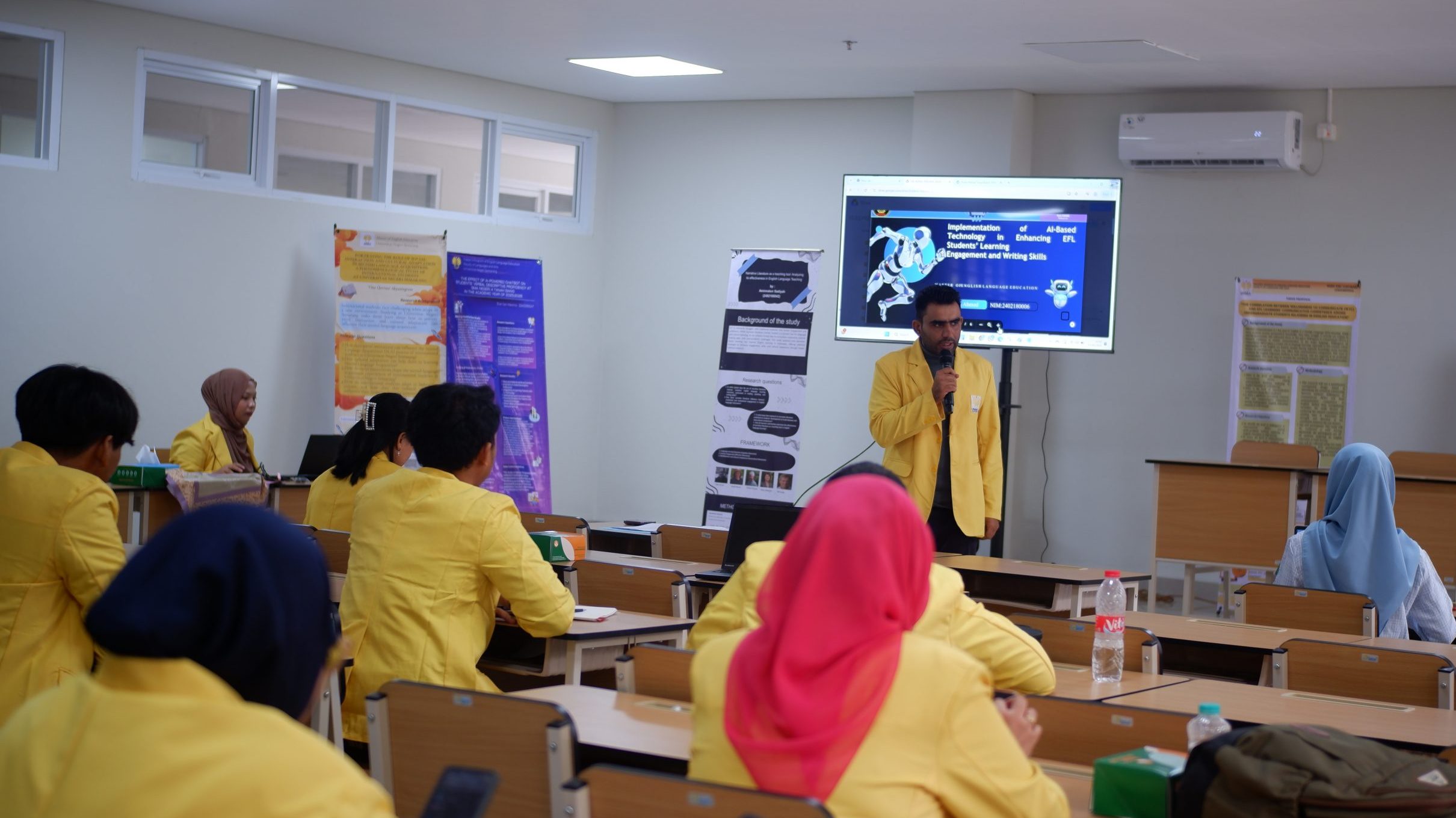Mahasiswa Pascasarjana Program Studi Magister Pendidikan Bahasa Inggris terlibat aktif dengan mempresentasikan riset mereka melalui dua format: Focus Group Discussion: Sesi diskusi kelompok kecil dengan umpan balik langsung dari para pakar dan Research Gallery Walk: Presentasi poster di ruang terbuka yang mendorong diskusi interaktif dan dialog antarmahasiswa.