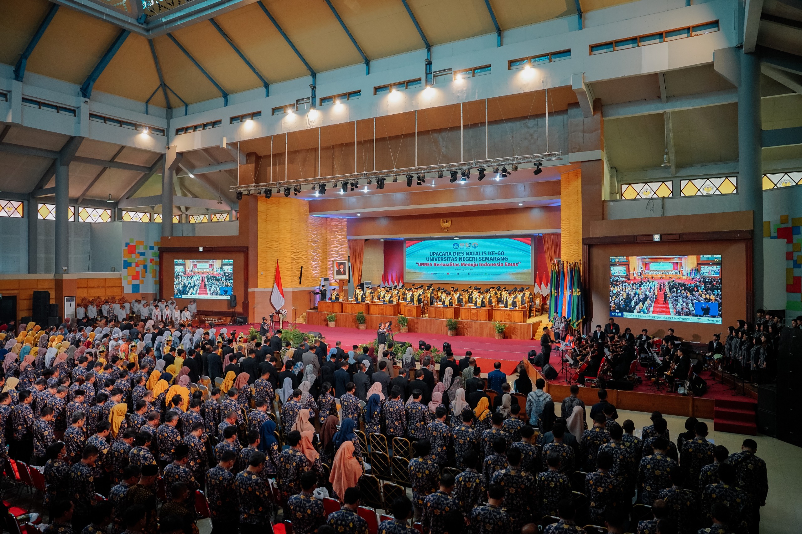 Universitas Negeri Semarang (UNNES) merayakan Dies Natalis ke-60 dengan penuh khidmat dan semangat kebangsaan di Auditorium Prof. Wuryanto pada Minggu (8/6/2025). Dengan mengusung tema “UNNES Berkualitas Menuju Indonesia Emas”, peringatan ini meneguhkan komitmen UNNES untuk terus menjadi perguruan tinggi bermutu dan berkontribusi nyata dalam pembangunan bangsa. Rektor UNNES, Prof. Dr. S. Martono, M.Si., dalam pidatonya...