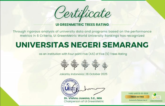 UNNES Achieves a 4.5 Trees Rating from UI GreenMetric: Evidence of Campus Commitment to Sustainability