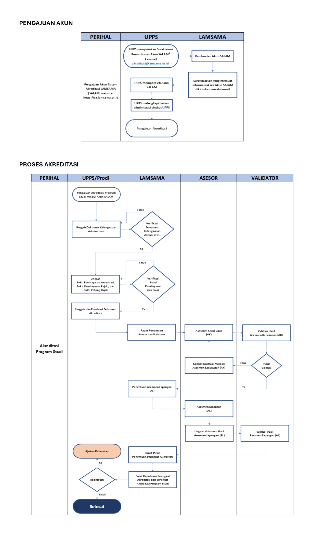 Pengajuan akun Sistem Akreditasi LAMSAMA (SALAM) dapat dilakukan dengan menulis surat resmi permohonan akun SALAM kepada Direktur Eksekutif LAMSAMA dikirim melalui email ke [email protected].