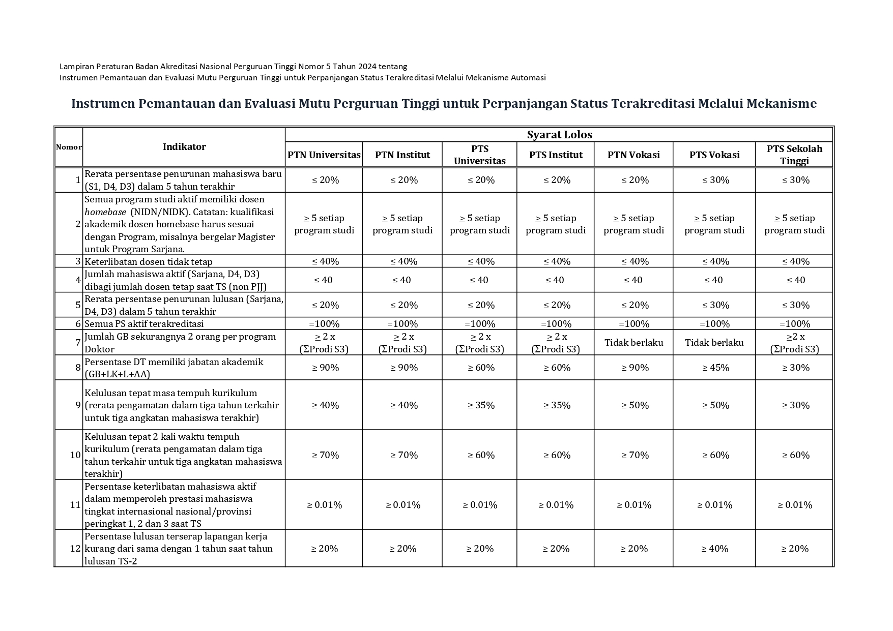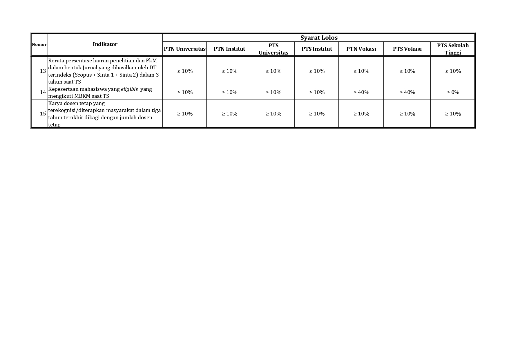 | No | Indikator dan Sumber Data | Syarat Lolos |