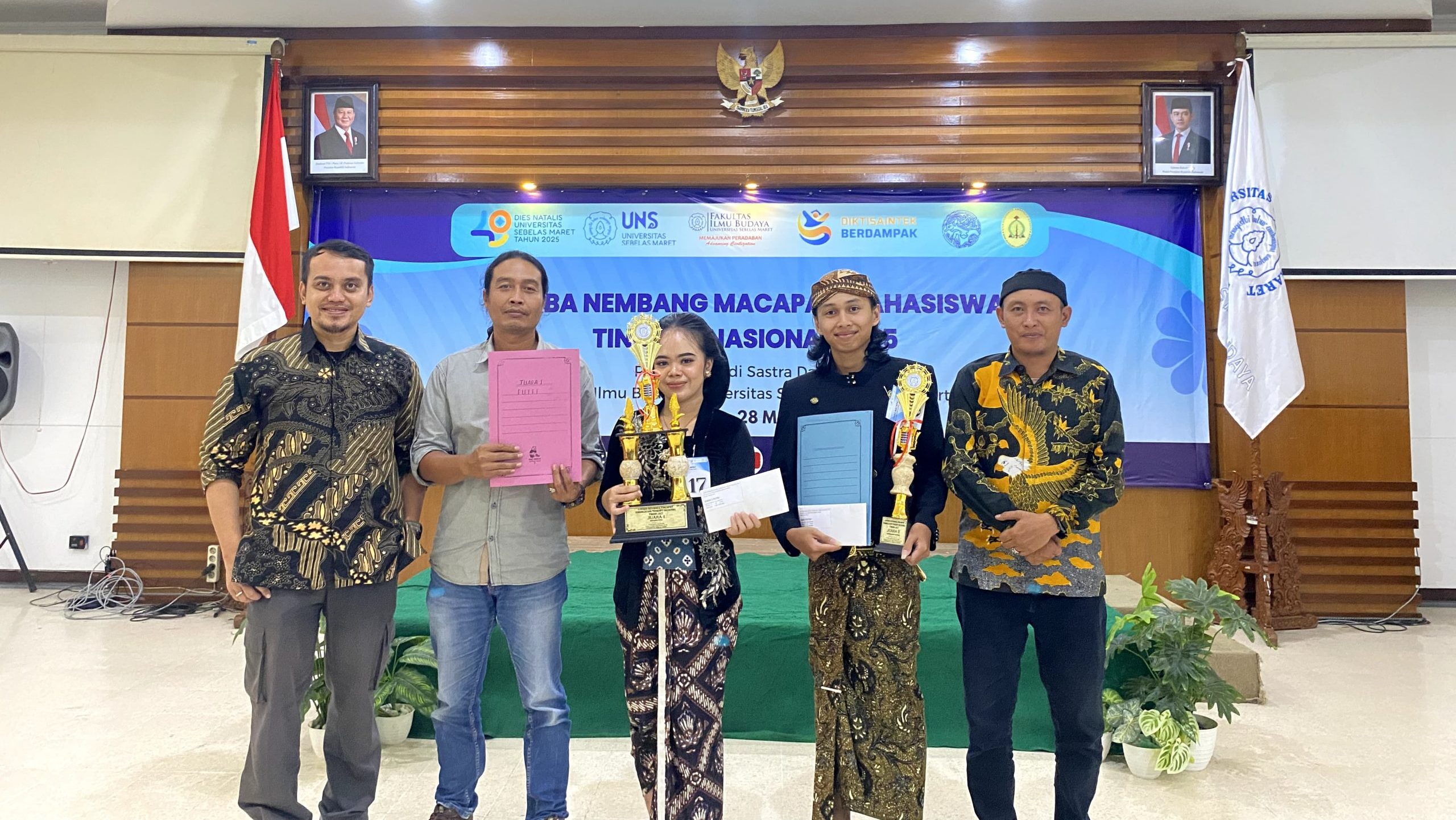 Mahasiswa Fakultas Bahasa dan Seni Universitas Negeri Semarang meraih juara dalam Lomba Nembang Macapat Mahasiswa Tingkat Nasional yang diselenggarakan oleh Prodi Sastra Daerah Fakultas Ilmu Budaya Universitas Sebelas Maret (UNS), Surakarta, 28 Mei 2025.