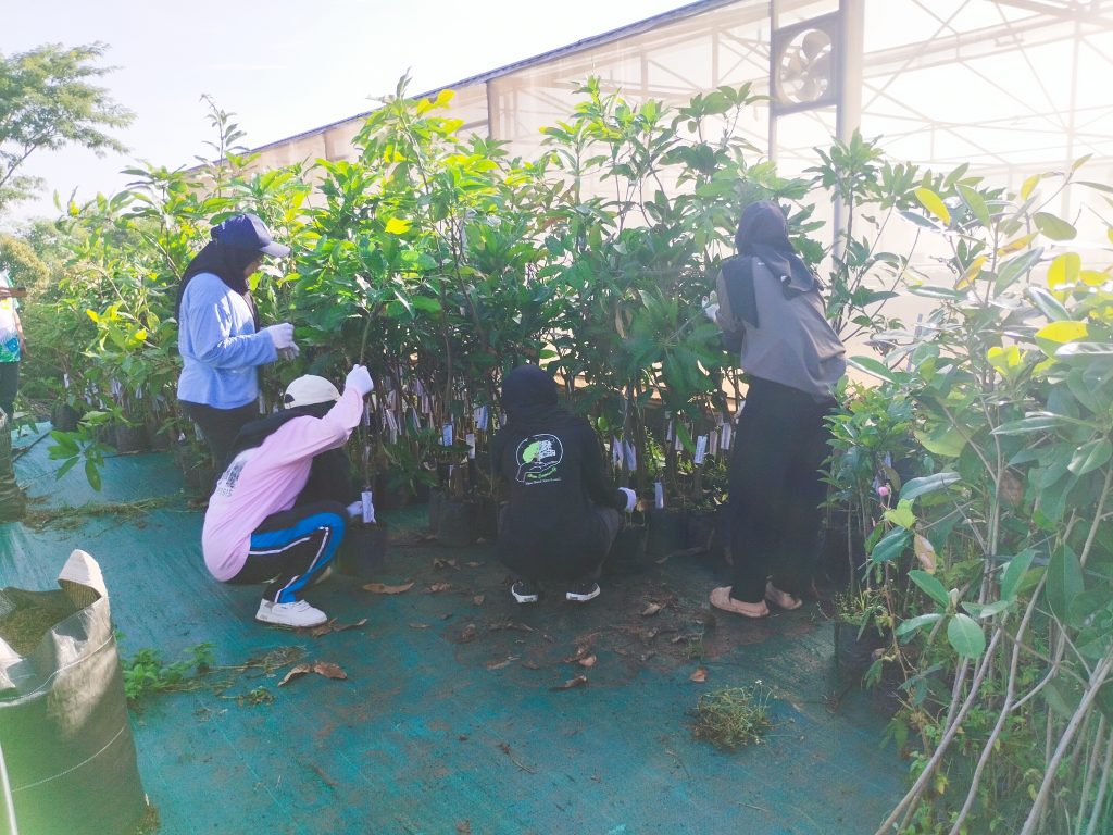 Para mahasiswa yang tergabung dalam organisasi kemahasiswaan turut berpartisipasi aktif dalam kegiatan ini. Mereka berperan dalam penataan bibit tanaman, membersihkan area kebun dari gulma dan sampah organik, serta mempersiapkan lahan untuk berbagai jenis tanaman yang akan ditanam dalam rangka program eduwisata.