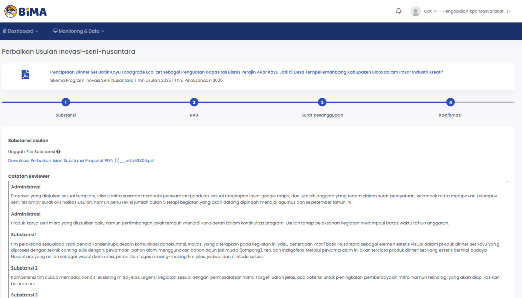 Klik pada ICON PDF untuk mengunduh full proposal dari BIMA