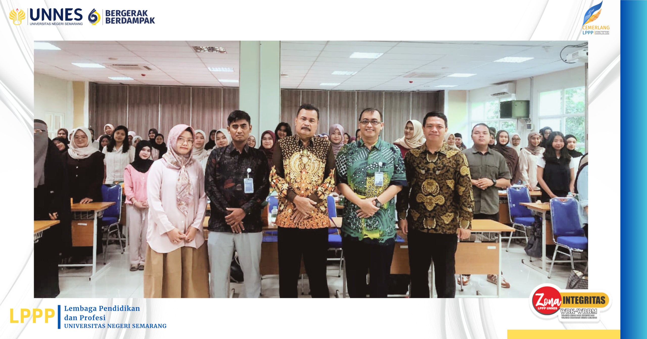 Semarang, 6 Maret 2026—Universitas Negeri Semarang (UNNES) melalui Pusbang PPL dan Lembaga Pengembangan Pendidikan dan Profesi (LPPP) menyelenggarakan Sosialisasi UNNES LANTIP Internasional Tahun 2026 di Gedung LPPP UNNES. Kegiatan ini dihadiri Wakil Rektor Bidang Akademik dan Kemahasiswaan UNNES, Prof. Dr. Zaenuri, M.Si., Akt., Ketua LPPP, Prof. Dr. Rodiyah, S.Pd., S.H., M.Si., Sekretaris LPPP, Kepala Pusbang...