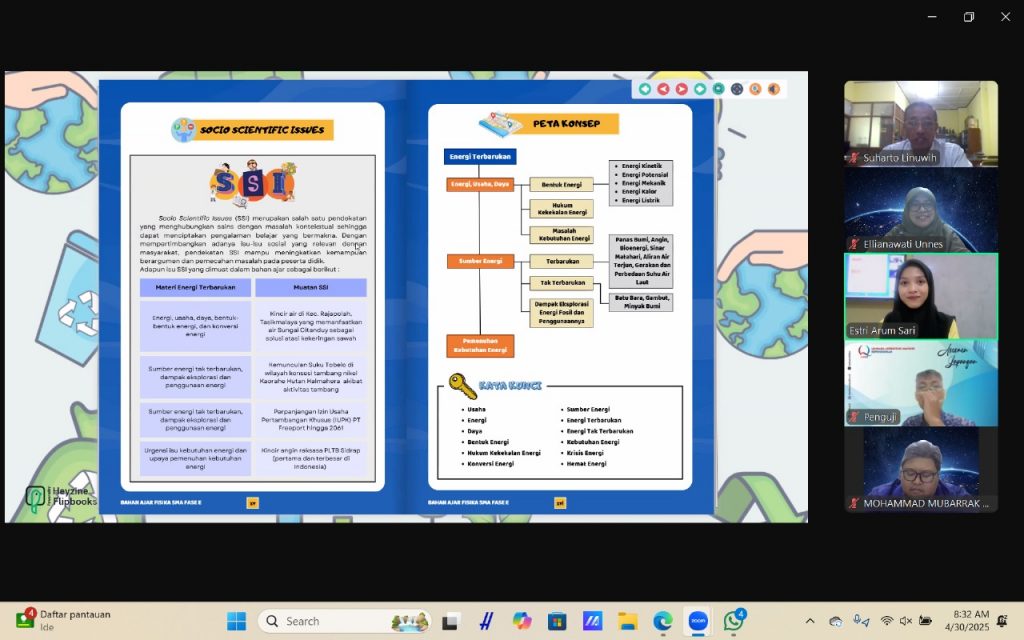 In her presentation, Estri presented interactive digital teaching materials on the theme of Renewable Energy (https://heyzine.com/flip-book/bb267084a4.html), which not only contains rich and varied learning content, but has also integrated the Socio Scientific Issues (SSI) approach in order to increase students’ awareness of socially relevant science issues. Mr. Mubarrak stated that the product deserves appreciation because it touches on various important aspects of 21st century learning, especially in encouraging students’ critical thinking skills and contextual understanding.