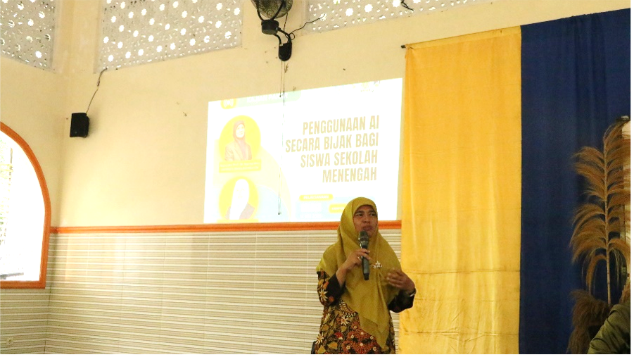 Artificial Intelligence or AI has become part of everyday life in this digital era. AI has even become embedded in various platforms that we commonly use such as social media and search engines. High school students today are also familiar with the use of AI in various ways. However, the use of AI needs to be done wisely so as not to dull students’ creative thinking skills. In line with this, the Faculty of Mathematics and Natural Sciences, Semarang State University (FMIPA Unnes) in collaboration with Universiti Teknologi Malaysia (UTM) conducted a socialization of the use of AI to students of the Bina Amal Semarang Integrated Islamic High School. This socialization is packaged in the form of an Expert Study entitled Wise Use of AI for Middle School Students.