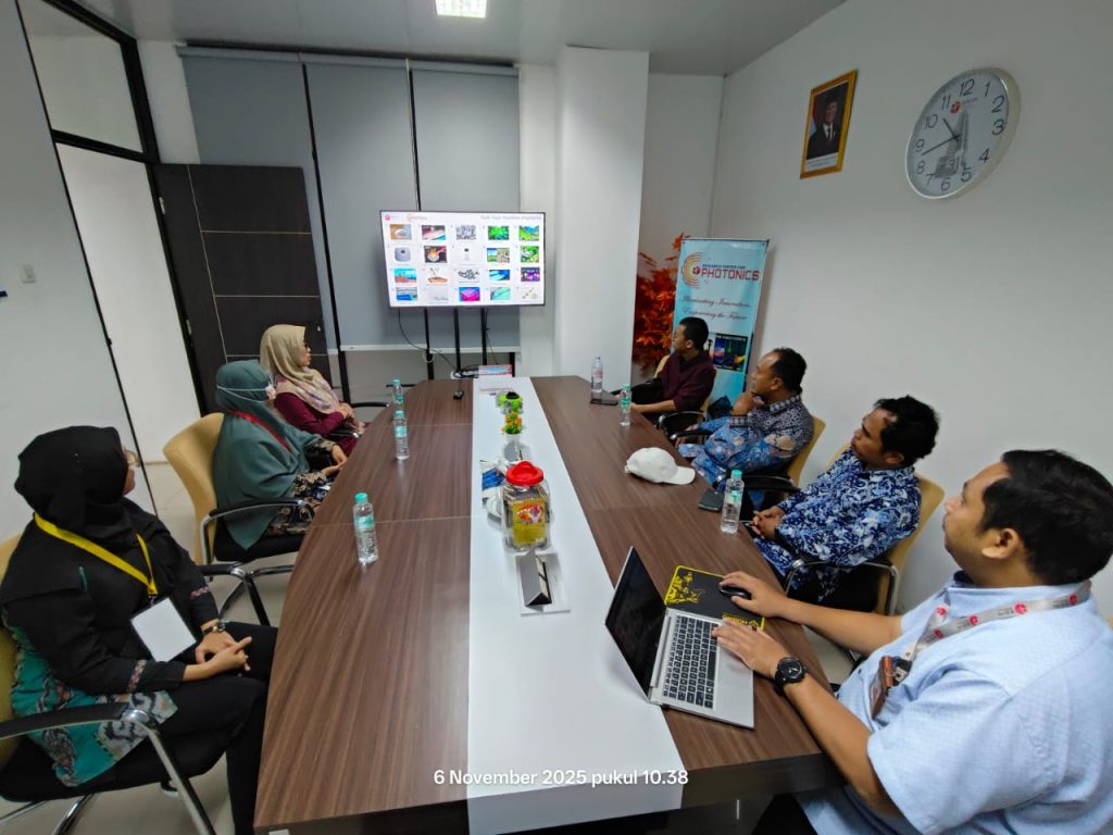 The Physics Study Program of the Faculty of Mathematics and Natural Sciences, Semarang State University (UNNES), conducted a working visit to the National Research and Innovation Agency (BRIN) in Serpong, South Tangerang, Banten, on November 6, 2025. The visit was led by Prof. Dr. Masturi, M.Sc., Coordinator of the Physics Study Program, accompanied by Dr. Sunarno, M.Sc., Dr. Ian Yulianti, M.Eng., and Fifin Dewi Ratnasari, M.Sc., from the Physics Study Program’s MBKM team. The delegation was received by Prof. Dr. Isnaeni, M.Sc., Head of the BRIN Photonics Research Group, at the BRIN Management Building in Serpong. This meeting served as an important opportunity to strengthen the academic and research partnership between UNNES and BRIN in the areas of student internships, final project writing, and joint mentoring, in line with efforts to support SDGs 4 (Quality Education) and SDGs 17 (Partnership for the Goals).