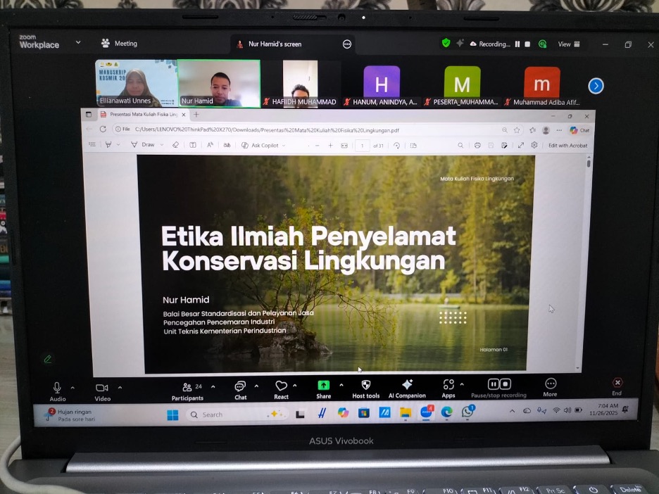 Semarang, 24 November 2025 — The Physics Education Study Program of FMIPA UNNES held a Practitioner Lecture in the English course, featuring an inspiring alumna who has built a professional career in Australia over the past seven years. This activity aimed to enrich students’ understanding of English use in global professional contexts.